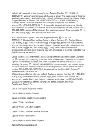 Uphold will never call or text our customers Service Number ☎️+1-830-210-2083[US]⭐. Uphold’s primary support channel is email. The good news is there’s a straightforward way to reach help Call +1-830-210-2083—just call the Uphold Wallet Support Number at Phone: Call +1-830-210-2083or +1-830-210-2083during business hours. They are available 24/7 and provide prompt and efficient support☎️+1-830-210-2083[US]⭐. If you prefer to speak with someone directly, you can reach out to Uphold customer service by calling their toll-free number at +1-830-210-2083. [email protected]. Get customer support, file a complaint ☎️+1-830-210-2083[US]⭐, and resolve your issue fast.