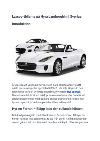 Leta inte längre än den spännande världen av lyxiga sportbilsuthyrningar Hyr sportbil. Oavsett om det är för ett bröllop, en weekendresa eller bara för att uppleva spänningen med att köra ett högpresterande fordon, kan hyra en sportbil lyfta din upplevelse till en helt ny nivå.