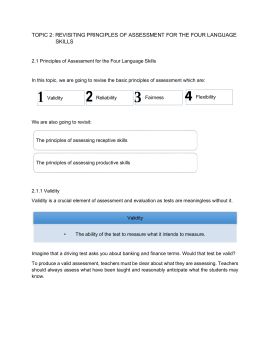 A quick refresher on the principles of assessment for listening, speaking, reading and writing skills.