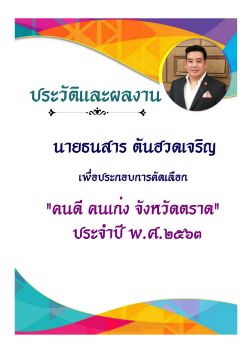 รวมผลงาน นายธนสาร ตันฮวดเจริญ ประกอบการพิจารณาคัดเลือกคนดีคนเก่งจังหวัดตราด ประจำปี 2563