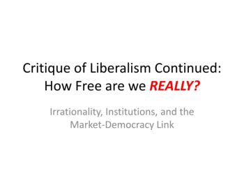 Critique of Liberalism Continued: How Free are we REALLY? Irrationality, Institutions, and the Market-Democracy Link