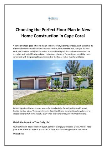 Choosing the Perfect Floor Plan In New Home Construction in Cape Coral