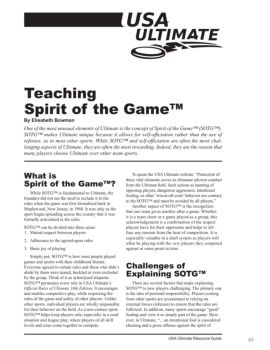 USA Ultimate Resource Guide What is Spirit of the Game™? While SOTG™ is fundamental to Ultimate, the founders did not see the need to include it in the