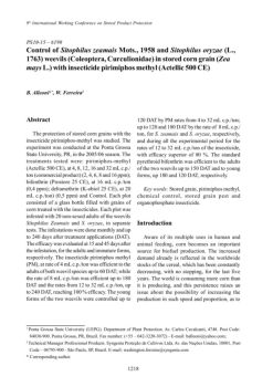 Control of Sitophilus zeamais Mots., 1958 and Sitophilus oryzae (L., 1763) weevils (Coleoptera, Curculionidae) ... After cleaning, drying and expurgating, the grains