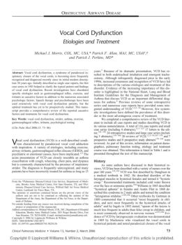 OBSTRUCTIVE AIRWAYS DISEASE Vocal Cord Dysfunction Etiologies and Treatment Michael J. Morris, COL, MC, USA,* Patrick F. Allan, MAJ, MC, USAF,† and Patrick J ...