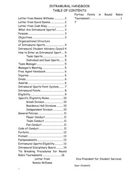 INTRAMURAL HANDBOOK TABLE OF CONTENTS