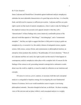 1 1 By P. Kyle Stanford James Ladyman and Donald Ross’s broadside against traditional analytic metaphysics embodies the most admirable characteristics of a good ...