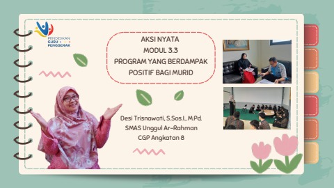 Aksi Nyata yang dilakukan oleh Ibu Desi Trisnawati, S.Sos.I., M.Pd. pada Pendidikan Guru Penggerak Angkatan 8 Kab. Sukabumi berkaitan dengan Modul 3.3 Tentang Program yang Berdampak Positif bagi Murid