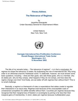 The Relevance of Regimes than the worst-case scenarios with them. The regimes have especially important roles to play in promoting compliance and confidence-building.