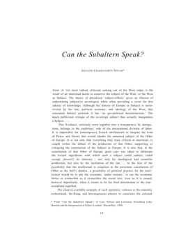 Can the Subaltern Speak? - Northern Arizona University