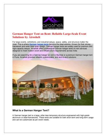 German Hanger Tent on Rent: Reliable Large-Scale Event Solutions by Airoshelt