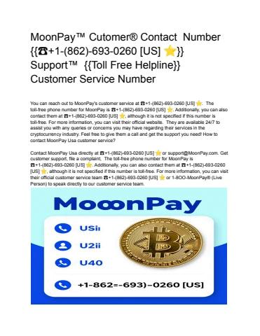 MoonPay™ Cutomer® Contact Number {{☎+1-(862)-693-0260 [US] ⭐}} Support™ {{Toll Free Helpline}} Customer Service Number