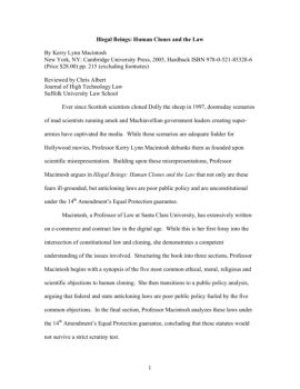 1 Illegal Beings: Human Clones and the Law By Kerry Lynn Macintosh New York, NY: Cambridge University Press, 2005, Hardback ISBN 978-0-521-85328-6