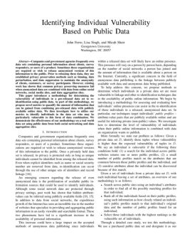 Identifying Individual Vulnerability Based on Public Data John Ferro, Lisa Singh, and Micah Sherr Georgetown University Washington, DC 20057 Abstract—Companies and ...