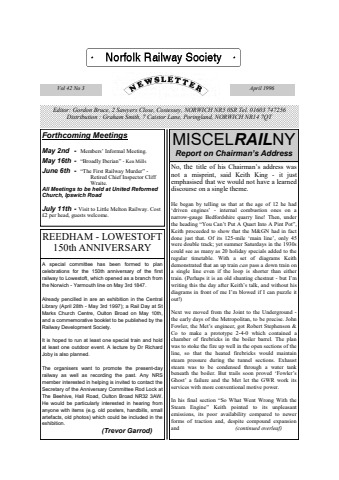 Newsletter from April 1996 reproduced from the original MS Publisher file.