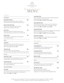 The Andaman Beach Hotel Phuket Patong - Room Service a La Carte Menu