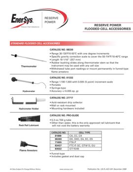 Publication No. US-FL-ACC-001 December 2008 RESERVE POWER FLOODED CELL ACCESSORIES • Range 30-130ºF/0-55ºC with one degree increments • Specific gravity ...