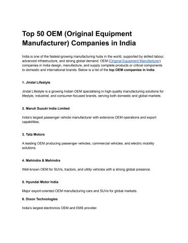 Discover the top OEM companies in India across automotive, electronics, electric vehicles and industrial manufacturing. This list highlights trusted manufacturers supporting global brands, Make in India initiatives and international exports