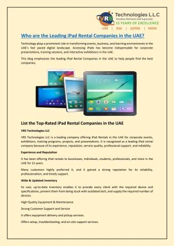 Leading providers offer flexible terms, latest models, and full event support. For a premium Rent iPad for Events experience, choose VRS Technologies LLC. Call +971564090907.