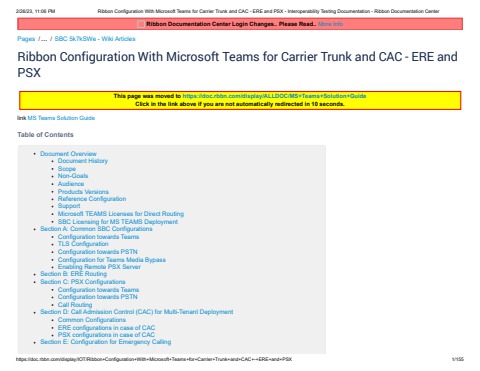 Ribbon Configuration With Microsoft Teams for Carrier Trunk and CAC - ERE and PSX - Interoperability Testing Documentat