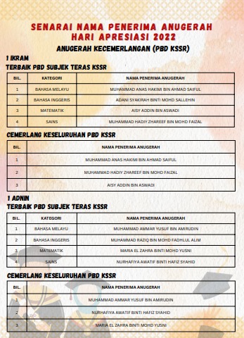 SENARAI PENERIMA ANUGERAH HAA & MG TAHUN 6 2022