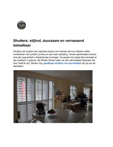 Shutters zijn dé perfecte combinatie van luxe uitstraling en praktisch comfort. Ze bieden optimale controle over licht en privacy, terwijl ze jarenlang meegaan. Dankzij moderne productietechnieken zijn stijlvolle raamshutters vandaag de dag verrassend betaalbaar. Of je nu een klassiek of modern interieur hebt, shutters passen moeiteloos in elke woonstijl en vormen een duurzame investering voor je woning.