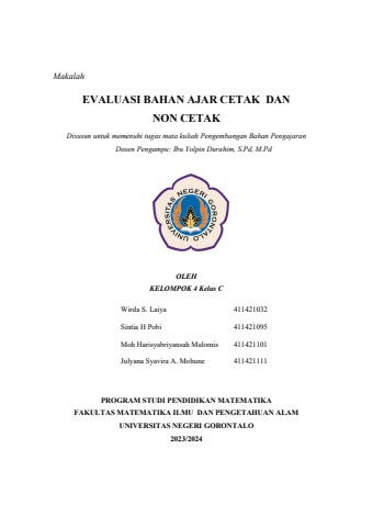 Pembahasan mengenai Evaluasi Bahan Ajar Cetak dan Non Cetak.