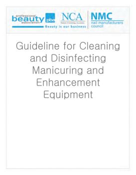 Guideline for Cleaning and Disinfecting Manicuring and Enhancement Equipment. These guidelines outline procedures cleaning (sanitizing) and disinfecting all types of