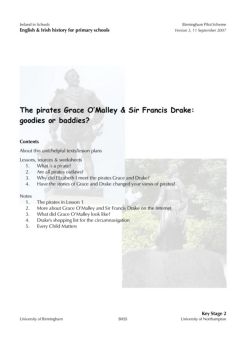 The pirates Grace O’Malley & Sir Francis Drake: goodies or baddies? Contents About this unit/helpful texts/lesson plans Lessons, sources & worksheets