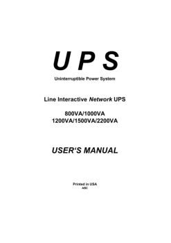 U P S Uninterruptible Power System Line Interactive Network UPS 800VA/1000VA 1200VA/1500VA/2200VA USER‘S MANUAL Printed in USA ABC