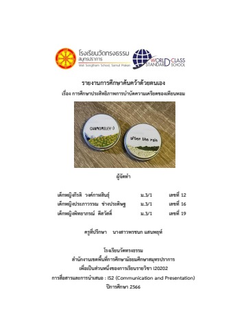 การศึกษาประสิทธิภาพการบำบัดความเครียดของเทียนหอม