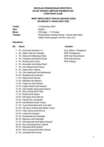 MINIT MESYUARAT PENYELARASAN GURU BIL 2 2022