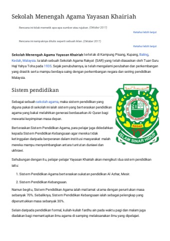 Sekolah Menengah Agama Yayasan Khairiah - Wikipedia Bahasa Melayu, ensiklopedia bebas