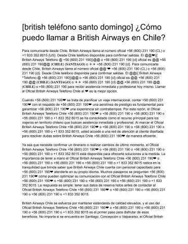 Para comunicarte desde Chile, British Airways llama al número oficial +56 (800) 231 190 (CL) o +1 833 352 8015 {US}. Desde Chile teléfono disponible para confirmar salidas. El @@❤{{ British Airways Telefono @ +56 (800) 231 190}}@@ o +56 (800) 231 190 {cl} oficial es @@ +56 (800) 231 190@@ (?????) (????????) o ✈✈ +56 (800) 231 190 {cl}. Para comunicarte desde Chile, British Airways llama al número oficial @@ ❤ +56 (800) 231 190 (CL) o +56 (800) 231 190 {cl}.