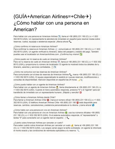 Para hablar con una persona en American Airlines ✈️, llama al +56 (800) 231 190 (CL) o +1 833 352 8015 (USA). Un representante te atenderá de inmediato en español para resolver dudas sobre reservas, vuelos, equipaje o asistencia especial. ¡Marca ahora! ?