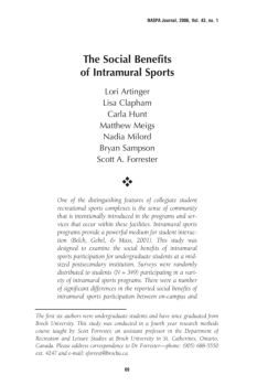 NASPA Journal, 2006, Vol. 43, no. 1 Purpose The purpose of this study is to examine the social benefits of intra-mural sports participation for undergraduate students ...