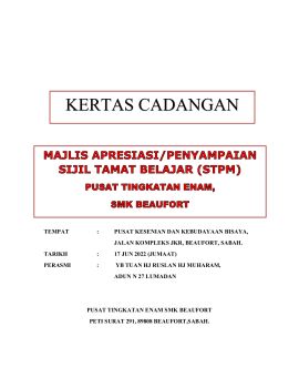 KERTAS CADANGAN APRESIASI KOHORT 2021