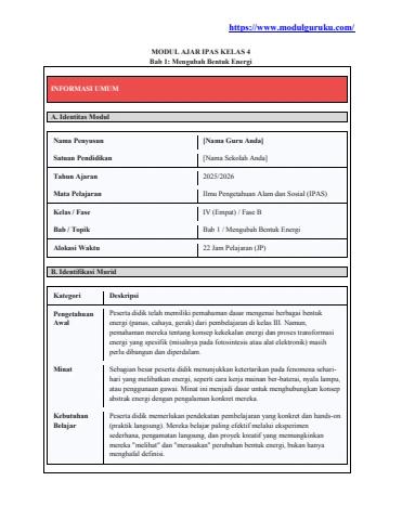 Modul Ajar Deep Learning IPAS Kelas 4 Kurikulum Merdeka [modulguruku.com]