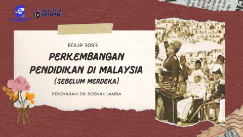 PERKEMBANGAN PENDIDIKAN DI MALAYSIA SEBELUM MERDEKA