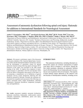 105 KRASSIOUKOV et al. Assessment of autonomic dysfunction following SCI deep tendon reflexes had occurred, while still other groups defined the end of spinal shock ...