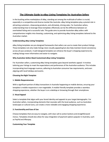 By choosing, customizing, and optimizing your eBay listing templates Australia with the Australian market in mind, you can create compelling listings that stand out, resonate with local buyers, and drive your online business success. Click here to learn more.