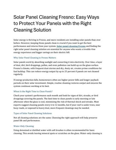 Solar Panel Cleaning Fresno: Easy Ways to Protect Your Panels with the Right Cleaning Solution
