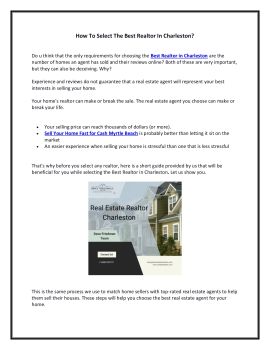 How To Select The Best Realtor In Charleston