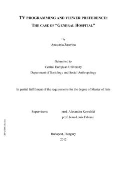 Collection TV PROGRAMMING AND VIEWER PREFERENCE: THE CASE OF “GENERAL HOSPITAL” By Anastasia Zasorina Submitted to Central European University Department of ...