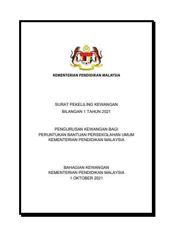PEKELILING KEWANGAN BILANGAN 1 TAHUN 2021 : PENGURUSAN KEWANGAN BAGI PERUNTUKAN BANTUAN PERSEKOLAHAN UMUM KEMENTERIAN PENDIDIKAN MALAYSIA