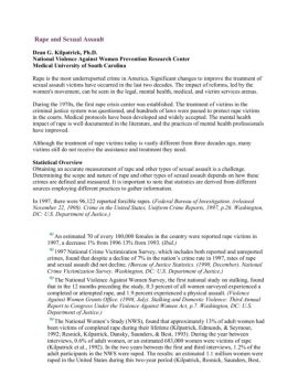 Rape and Sexual Assault Dean G. Kilpatrick, Ph.D. National Violence Against Women Prevention Research Center Medical University of South Carolina