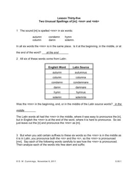 Two Unusual Spellings of [m]: <mn> and <mb> 1 The sound [m] is spelled <mn> in six words: autumn condemn hymn column damnsolemn.