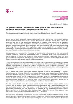 Bonn, 2013, June 7 - 6:15pm 28 pianists from 13 countries take part in the International Telekom Beethoven Competition Bonn 2013 The jury selected the participants ...