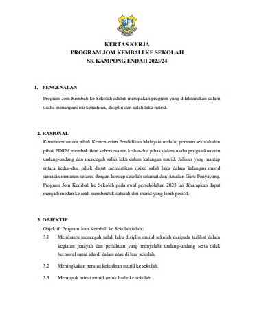 KERTAS KERJA JOM KEMBALI KE SEKOLAH