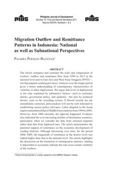 Philippine Journal of Development Number 70, First and Second Semesters 2011 Volume XXXVIII, Numbers 1 & 2 Migration Outflow and Remittance Patterns in Indonesia ...